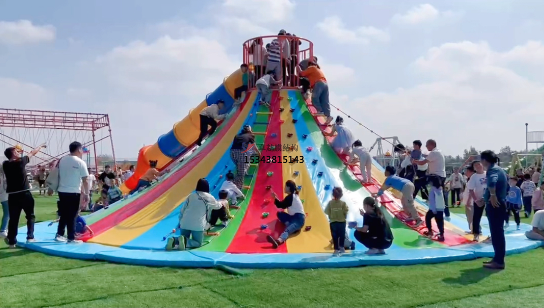 火山攀巖適用于各種場所,如大型游樂場、冒險主題公園、娛樂中心、特色小鎮(zhèn)等場所。膜結構的輕便性和可塑造性使得它在不同的場地環(huán)境中都能夠方便地安裝和設置。無論是場地空間大小、地形地貌如何,都可以根據實際情況對火山攀巖設備進行布局和調整,以適應不同場所的需求。