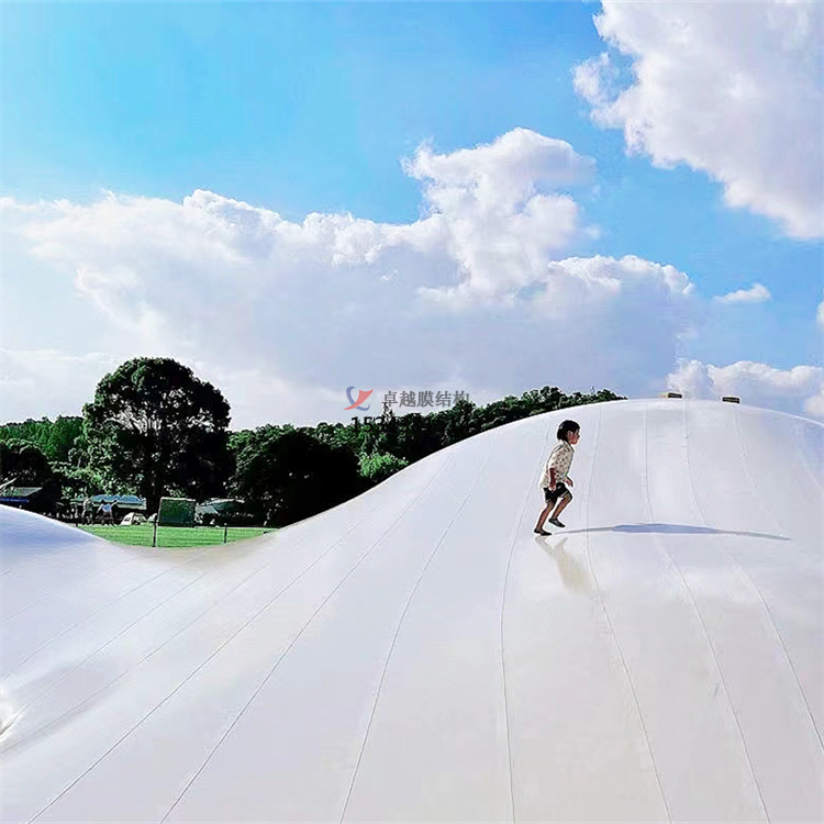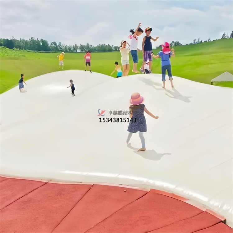 蹦蹦云是新型無動(dòng)力兒童互動(dòng)體驗(yàn)設(shè)施,似朵朵白云、形象新穎;整體采用的膜結(jié)構(gòu)拼接而成??杀摹⒖苫?、可爬。適合很多年齡段兒童和成人使用。