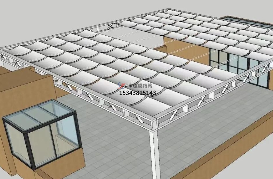 膜結(jié)構(gòu)是由多種高強薄膜材料組成的,有PTFE膜材、ETFE膜材、PVC膜材等,涂PTFE具有較好的隔熱效果,可以反射70%的太陽熱能,不受紫外線影響,隔熱效果甚好,造浪池遮陽棚設(shè)計施工為你在夏日炎炎中撐起一片涼爽地方;在自潔性也有著其傳統(tǒng)建筑所沒有的優(yōu)勢,而在使用壽命上,更是達到15年以上,讓你無需擔(dān)憂。