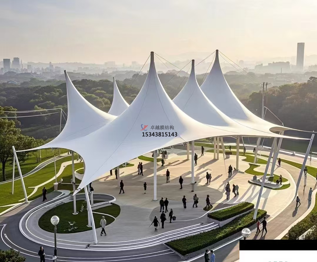 膜結構具有高度的可塑性和適應性,可根據(jù)場地的大小和形狀進行設計,使休閑廣場將建設具有更大的靈活性。