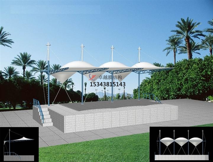 藝術(shù)性:除了一般雨蓬不可比擬的實(shí)用、耐用、遮風(fēng)擋雨的功能外,膜結(jié)構(gòu)雨蓬更是一座雕塑,一件藝術(shù)品,給人美的視覺享受。其柔美,其曲線,其剛?cè)岵?jì),其豐富造型,其潔白無瑕,讓人眼前一亮,回味悠長。