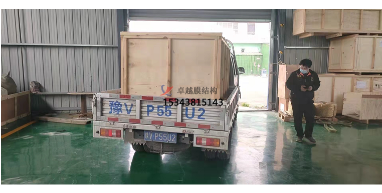 此圖為工廠生產(chǎn)完成,單體膜片包裝好后,裝車發(fā)貨的照片。