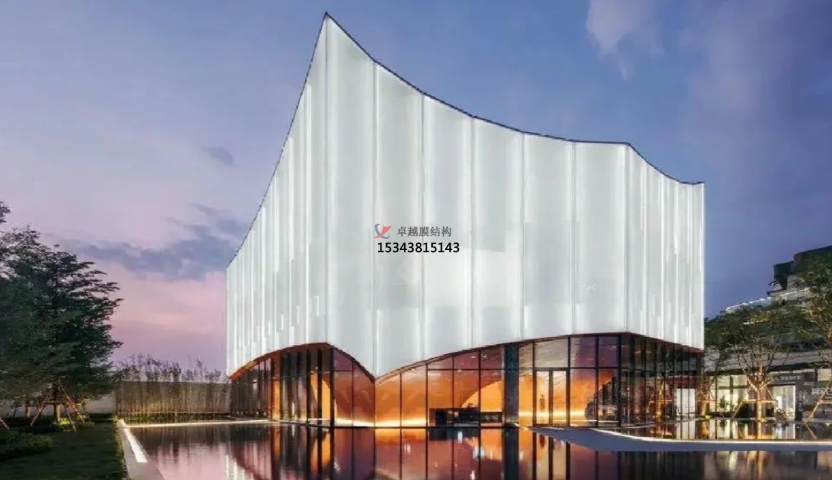 此外,PTFE膜結構的薄膜具有一定的透光性,能夠有效利用自然光線,降低室內照明能耗,遮擋紫外線和紅外線,減少太陽輻射對建筑內部的熱負荷,實現能源的節(jié)約和環(huán)境的保護;且PTFE膜結構能夠通過不同的張拉和固定方式,創(chuàng)造出各種形態(tài)的建筑設計。它可以形成曲線、弧線、折線等多樣化的形狀,滿足建筑師對于獨特外觀和創(chuàng)新設計的需求。