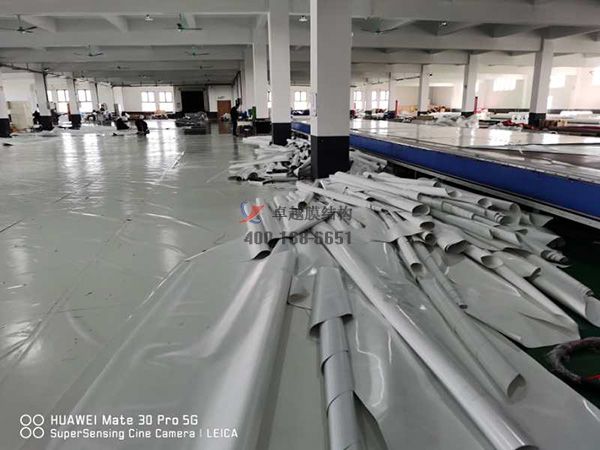 2、同一膜結(jié)構(gòu)工程宜使用同一企業(yè)、同一批號(hào)的膜材。每批膜材均應(yīng)具有產(chǎn)品質(zhì)量保證書(shū)和檢查報(bào)告,并應(yīng)進(jìn)行進(jìn)貨抽檢。膜材表面應(yīng)無(wú)針孔,無(wú)明顯褶皺和明顯污漬,不應(yīng)出現(xiàn)斷絲、裂縫和破損現(xiàn)象,色澤應(yīng)無(wú)明顯差異。