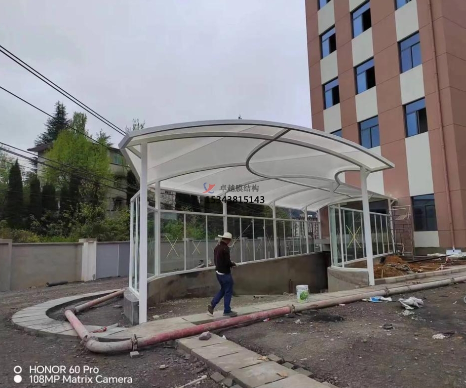 膜結(jié)構(gòu)資料具有杰出的柔韌性,能夠塑造出豐富多樣的造型。無(wú)論是簡(jiǎn)練流暢的直線型,還是優(yōu)雅靈動(dòng)的曲線型,亦或是富有創(chuàng)意的異形,都能與修建全體風(fēng)格相交融,為地下車庫(kù)出入口增加共同的美感。如一些現(xiàn)代化的商業(yè)修建,其地下車庫(kù)出入口選用了膜結(jié)構(gòu)雨棚,共同的造型與修建外觀相輔相成,提高了整個(gè)修建的層次和吸引力。