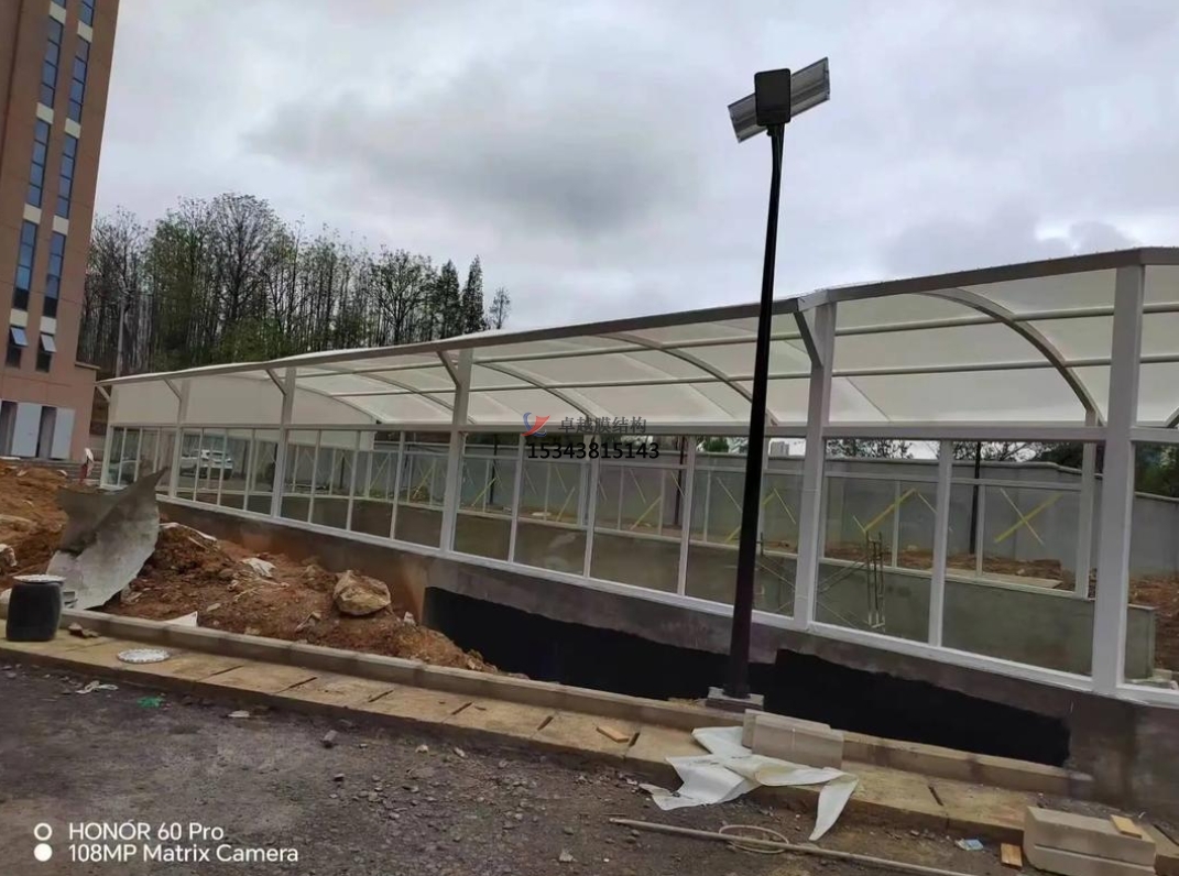 地下車庫(kù)出入口膜結(jié)構(gòu)雨棚憑借其杰出的功能、漂亮的造型和經(jīng)濟(jì)高效的特色,在現(xiàn)代城市建設(shè)中發(fā)揮側(cè)重要效果。經(jīng)過(guò)科學(xué)合理的規(guī)劃和嚴(yán)格規(guī)范的施工,膜結(jié)構(gòu)雨棚能夠?yàn)榈叵萝噹?kù)供給牢靠的防護(hù),提高修建的全體質(zhì)量和形象,為人們的日子帶來(lái)更多便當(dāng)和舒適。跟著膜結(jié)構(gòu)技能的不斷發(fā)展和創(chuàng)新,相信地下車庫(kù)出入口膜結(jié)構(gòu)雨棚將會(huì)在未來(lái)的修建領(lǐng)域展現(xiàn)出更加寬廣的使用遠(yuǎn)景。