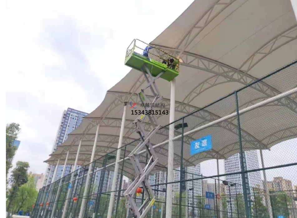 膜結(jié)構(gòu)材料具有較好的耐久性和自潔性。一般情況下,只需要定期進(jìn)行簡單的清潔和檢查,不需要像傳統(tǒng)建筑結(jié)構(gòu)那樣頻繁地進(jìn)行大規(guī)模的維修和保養(yǎng)。選擇具有自潔性的膜材,表面的自潔涂層可以在雨水的沖刷下自動清潔灰塵和污漬,大大降低了維護(hù)成本。