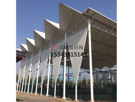 在安裝過程中,需要注意控制膜材料的張力和位置,保證其均勻分布和穩(wěn)定支撐。同時(shí),還需要進(jìn)行節(jié)點(diǎn)連接和加固,整個(gè)罩棚的穩(wěn)定性和安全性。最后,需要進(jìn)行驗(yàn)收和保養(yǎng),保證膜結(jié)構(gòu)的長(zhǎng)期使用和維護(hù)。