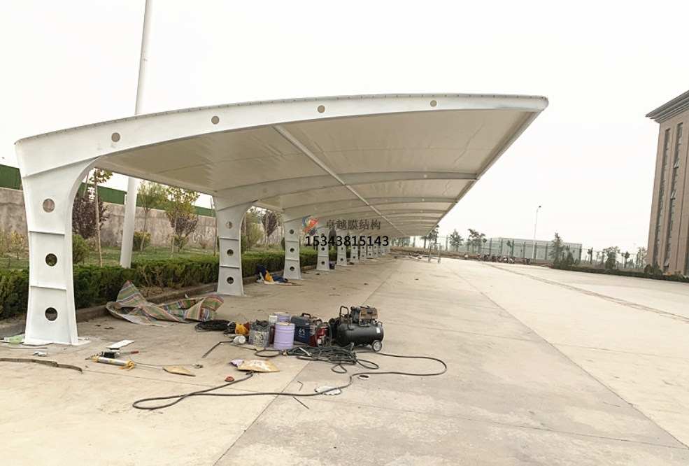 • 環(huán)保節(jié)能:膜結(jié)構(gòu)材料通??梢曰厥绽?,符合綠色建筑的理念。同時,雨棚的設(shè)計使得車棚內(nèi)的照明需求較低,可以減少能耗。部分膜材料還具有高透光率和良好的熱反射性能,進(jìn)一步提高了雨棚的節(jié)能效果。