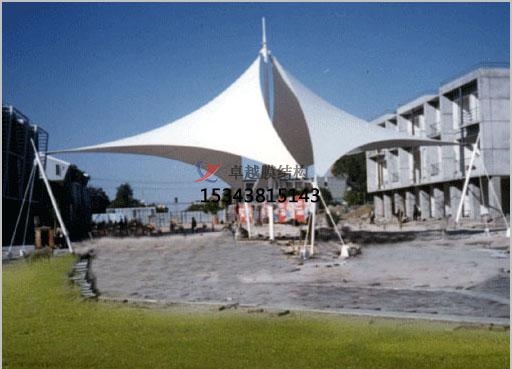 (1)形式靈活多樣鋼支承反吊氟碳纖景觀膜結(jié)構遮陽棚可根據(jù)場地條件的不同,設計與周圍環(huán)境相協(xié)調(diào)的外觀,充分顯示了柔性結(jié)構的特點。