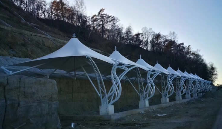 工程施工地址:黑龍江伊春市嘉蔭縣 膜材選材型號(hào):法國 法拉利膜材PVDF 1202T2 選用膜材拉力:5900N-6900N 鋼構(gòu)選用材料: 鞍鋼生產(chǎn)的Q235B高頻焊管及Q345無縫鋼管 工程施工周期:總工期29日歷天 索膜結(jié)構(gòu)形式:管桁架四邊張拉索膜結(jié)構(gòu)看臺(tái) 工程完工面積:膜材展開面積589㎡" />