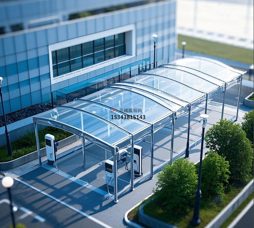 ??????? 膜結(jié)構(gòu)罩棚在采光與通風(fēng)方面優(yōu)勢顯著。許多膜材具有一定透光性,能讓天然光線柔和地灑入充電區(qū)域,既節(jié)省電力照明本錢,又為車主營造出明亮、舒適的充電環(huán)境。而且,膜結(jié)構(gòu)的開放性與合理的空間布局,利于空氣天然流通,有用驅(qū)散充電進(jìn)程中或許產(chǎn)生的熱量與異味,保持空氣新鮮,下降安全隱患。在一些悶熱的夏天,杰出的通風(fēng)可防止因溫度過高導(dǎo)致的充電設(shè)備毛病,保證充電站正常運(yùn)營。
