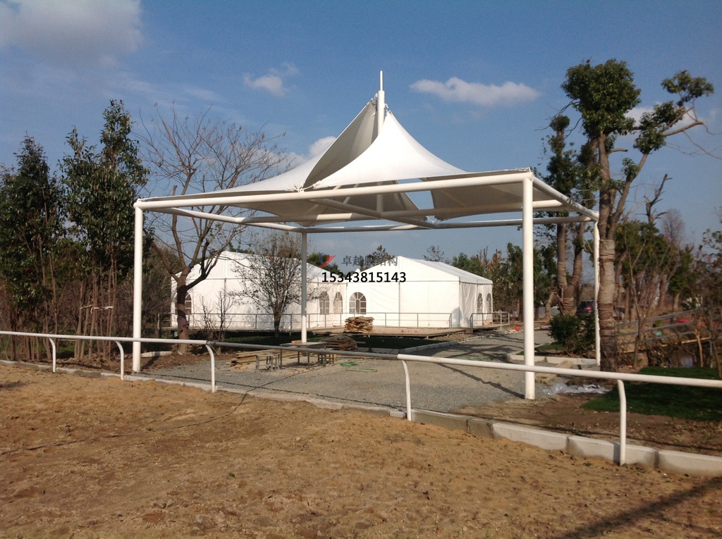 體育運(yùn)動領(lǐng)域需配套的停車棚、景觀設(shè)施等也可用景觀膜結(jié)構(gòu)遮陽棚來做,有造型簡單優(yōu)美、時(shí)尚大方、使用年限長、造價(jià)低等諸多優(yōu)勢,是目前建筑行業(yè)的一匹黑馬。