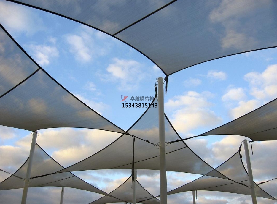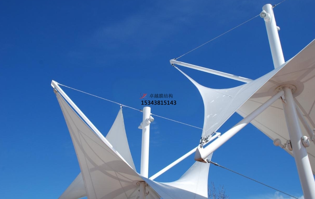 支撐體系則包括拉索、桅桿、拱等結(jié)構(gòu)部件。拉索如同整個結(jié)構(gòu)的 “筋骨”,通過合理布置,將膜材張拉至預(yù)定形狀,為膜材提供穩(wěn)定的支撐力。桅桿和拱等作為主要的豎向或曲線支撐,與拉索協(xié)同工作,共同確定膜結(jié)構(gòu)的空間形態(tài)。其原理基于力的平衡,利用膜材的張力和拉索的拉力相互作用,使整個結(jié)構(gòu)處于穩(wěn)定的受力狀態(tài),如同一張被精心張緊的巨型 “織物”,在風(fēng)中展現(xiàn)出獨特的力學(xué)美感。