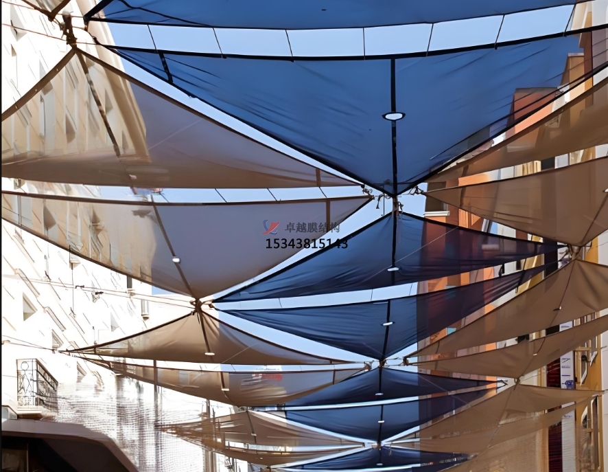 在商業(yè)領(lǐng)域,索膜結(jié)構(gòu)常被用于購物中心、步行街的入口雨篷、中庭遮陽等。其獨特的造型可以吸引消費者的目光,營造出富有活力的商業(yè)氛圍。同時,膜結(jié)構(gòu)的遮陽功能還能為顧客提供舒適的購物環(huán)境,減少陽光直射帶來的不適。