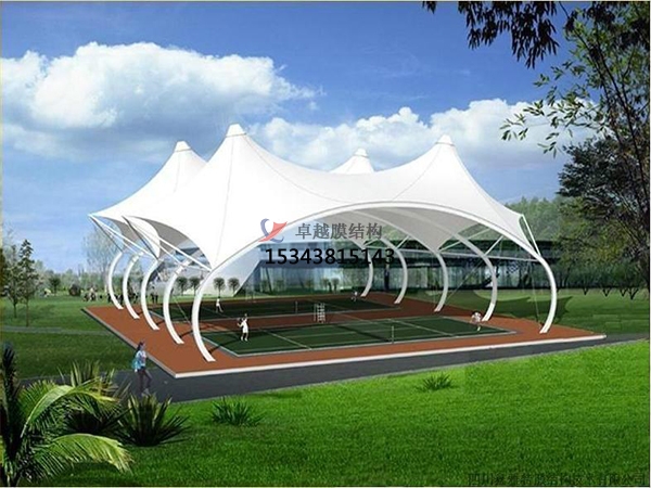 在體育場(chǎng)館的修建中使用膜構(gòu)造已成為搶手,并已開(kāi)展到掩蓋體育場(chǎng)的悉數(shù)看臺(tái),膜結(jié)構(gòu)網(wǎng)球場(chǎng)其懸挑的跨度也越來(lái)越大,在競(jìng)賽場(chǎng)地的中間局部的預(yù)蓋還能做成好天開(kāi)敞、雨天遮蓋的開(kāi)閉式構(gòu)造,添加了新的功用。