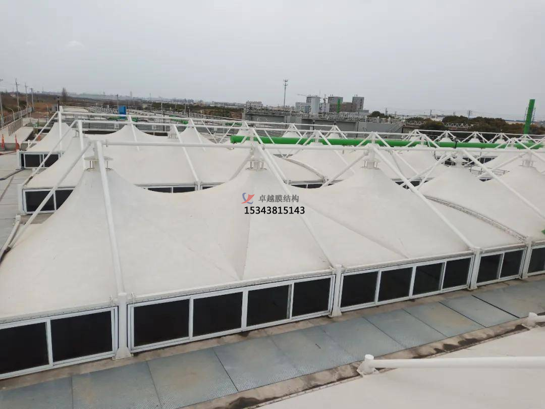 在運輸污水池膜材時,盡量將蓋板分成小塊搬運。這樣不僅時利于拆卸及人工的搬運.同時也省去了調(diào)用大型設(shè)備的成本。在各個膜材板運輸?shù)轿缓?在進行拼接安裝時.各個小塊膜材之間、膜材和水池頂面之間需要密封連接,這樣可以有效防止臭氣泄漏。在我們拼接安裝完成之后,可以先用水或是空氣來代替臭氣進行調(diào)試.檢測其安裝結(jié)果是否達到了密封性效果,檢查蓋板有無滴、漏、冒等現(xiàn)象。在進行著一系列檢驗工作完成之后.才能正常使用。