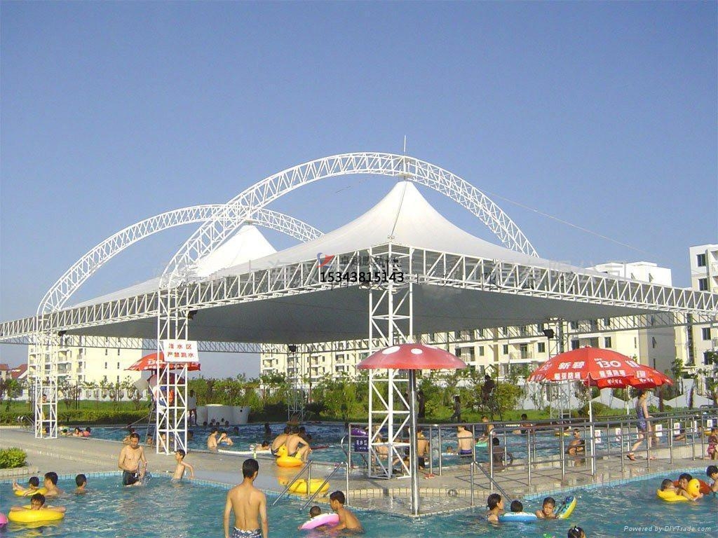 以鋼結(jié)構(gòu)或是集成材構(gòu)成的屋頂骨架后,在其上方張拉膜材的構(gòu)造形式,下部支撐結(jié)構(gòu)安定性高,因屋頂造型比較單純,開口部不易受限制,且經(jīng)濟(jì)效益高等特點(diǎn),廣泛適用于任何大小規(guī)模的空間。
