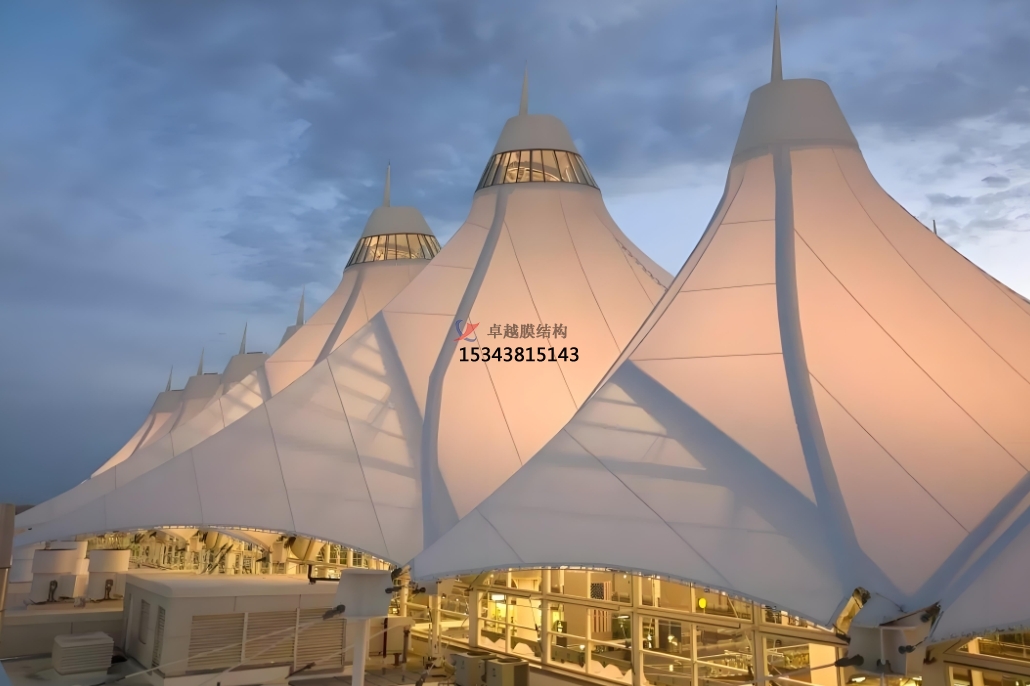 從功用角度來看,膜結(jié)構(gòu)的許多特性使其非常合適機(jī)場環(huán)境。杰出的透光性是膜結(jié)構(gòu)的一大亮點(diǎn)。例如,一些膜資料對天然光的透射率可達(dá) 25%,透射光在修建內(nèi)部發(fā)生均勻的漫射光,無陰影、無眩光,具有杰出的顯色性。這意味著在白天,機(jī)場內(nèi)部可以充分利用天然采光,削減人工照明的運(yùn)用,然后降低能耗,完成節(jié)能環(huán)保。一起,均勻柔軟的光線也為旅客提供了愈加舒適的視覺環(huán)境,有利于提高旅客的候機(jī)體會。膜結(jié)構(gòu)的自潔性能也非常超卓。像 PTFE 膜材和通過特殊外表處理的 PVC 膜材,雨水會在其外表聚成水珠流下,使膜材外表得到天然清洗,無需大量人工維護(hù),就能始終保持整齊漂亮,大大降低了后期維護(hù)本錢。