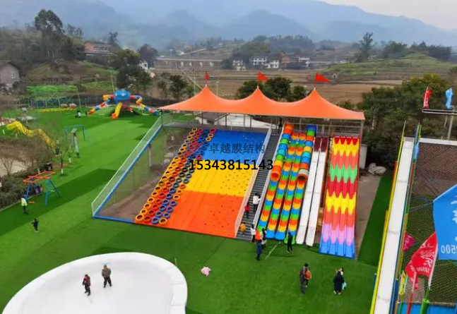 信陽彩虹滑道游樂設(shè)備紅色遮陽棚結(jié)構(gòu)設(shè)計(jì)生產(chǎn)