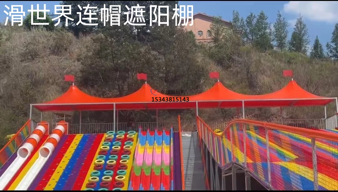 樂園內(nèi)的遮陽棚設(shè)計獨特,既可遮陽又可擋雨,為游客提供了一個舒適的游玩環(huán)境。遮陽棚采用輕質(zhì)、高強度的材料制成,具有良好的抗風(fēng)抗壓性能,即使在惡劣的天氣條件下也能為游客提供保護。此外,遮陽棚的設(shè)計還充分考慮到了安全性,采用了防滑、防撞等措施,確保游客在游玩過程中的人身安全。