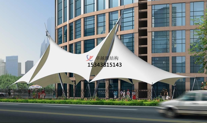2、在商業(yè)廣場雨棚搭建的施工中,膜材張力是保證其穩(wěn)定性的重要因素,為了能夠達(dá)到這樣一個(gè)較好的效果,要求施工人員根據(jù)實(shí)際情況隨時(shí)調(diào)整膜張力,避免因過度張力引起的膜撕裂。