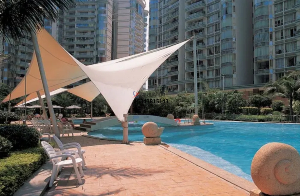 膜結(jié)構(gòu)遮陽棚的設計靈活多變,可以根據(jù)不同的場地和需求進行定制。其獨特的造型和線條流暢的外觀,能夠與現(xiàn)代建筑風格完美融合,提升整體建筑的美觀度和檔次。同時,膜結(jié)構(gòu)遮陽棚還賦予了設計師更大的發(fā)揮空間,可以賦予遮陽棚更多曲面、線條,使得整個遮陽棚看起來非常具有張力及雕塑感,成為游泳池邊上一道獨特的風景線。