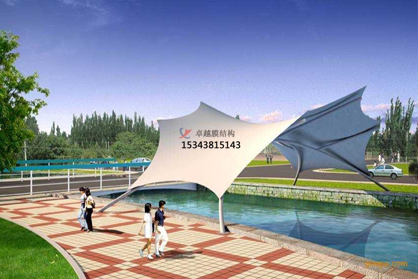 2、一個城市的中心區(qū)反映一個城市的地理風(fēng)貌和民族風(fēng)情,同時,也是一個城市文化發(fā)展程度的標(biāo)志。而景觀設(shè)計(jì)要求其具有廣泛的可讀性、雅俗共賞,既有超凡脫俗的藝術(shù)價值,又能使大眾喜聞樂見與大眾息息相通。張拉膜以其輕盈飄逸的造型、柔美并帶有力量的曲線和大跨度和大空間的鮮明個性和標(biāo)識性,應(yīng)用于城市小品設(shè)計(jì)中。