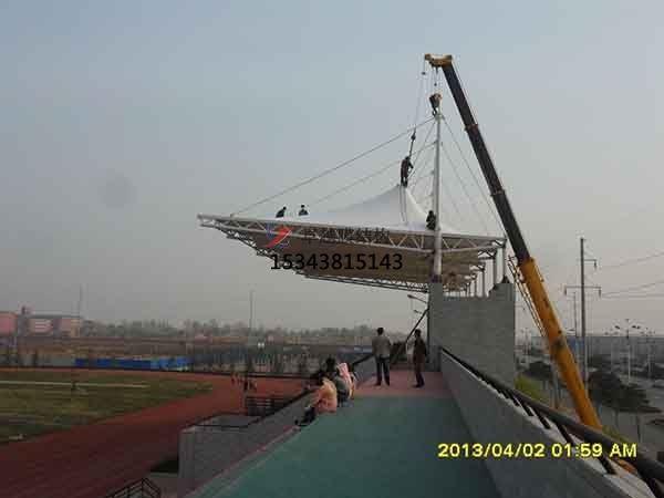 張拉膜結(jié)構(gòu)(Tesioned Membrane Structure) ,是依靠膜自身的張拉應(yīng)力與支撐桿和拉索共同構(gòu)成機(jī)構(gòu)體系。索膜結(jié)構(gòu)是用高強(qiáng)度柔性薄膜材料經(jīng)受其它材料的拉壓作用而形成的穩(wěn)定曲面,能承受一定外荷載的 空間結(jié)構(gòu)形式。膜結(jié)構(gòu)的出現(xiàn)為建筑師們提供了超出傳統(tǒng)建筑模式以外的新選擇。膜結(jié)構(gòu)一改傳統(tǒng)建筑材料而使用膜材,其重量只是傳統(tǒng)建筑的三十分之一。而且膜 結(jié)構(gòu)可以從根本上克服傳統(tǒng)結(jié)構(gòu)在大跨度(無(wú)支撐)建筑上實(shí)現(xiàn)時(shí)所遇到的困難,可創(chuàng)造巨大的無(wú)遮擋的可視空間。其造型自由輕巧、阻燃、制作簡(jiǎn)易、安裝快捷、 節(jié)能、易于、使用安全等優(yōu)點(diǎn),因而使它在世界各地受到廣泛應(yīng)用。
