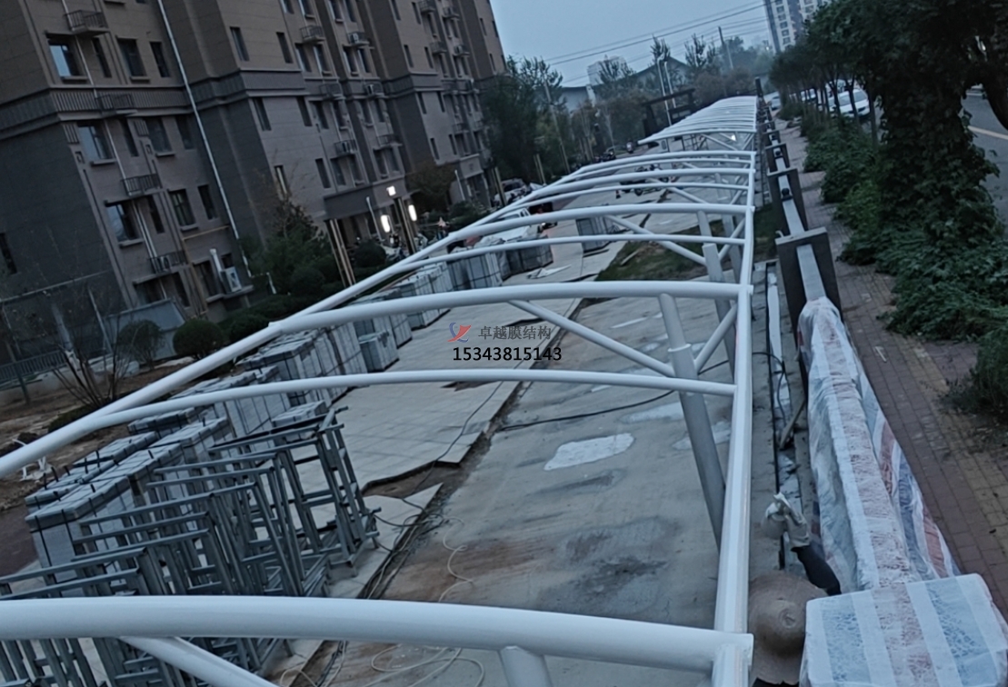 4、墻面附近的膜結(jié)構(gòu)車棚:水電改造也可能會(huì)成為一個(gè)問題,所以墻面中,膜結(jié)構(gòu)設(shè)計(jì)時(shí)盡量避免這方面的麻煩,安裝也提醒安裝人員注意。為什么要提到這一點(diǎn)?因?yàn)槎ㄖ颇そY(jié)構(gòu)車棚的安裝其實(shí)與整體建筑非常像,有時(shí)做基礎(chǔ)預(yù)埋之類會(huì)遇到,如果事先我們都不知道那里有管,那里有線,就會(huì)有打斷線,打爆水管的可能;線比較好接起來,可是水管就很難搞了。