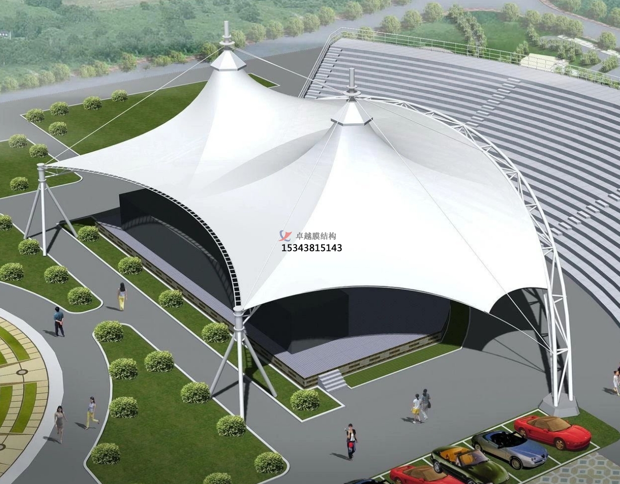 舞臺膜結(jié)構(gòu)遮陽棚廣泛應(yīng)用于各種戶外演出和活動中,如音樂會、戲劇表演、舞蹈演出等。此外,它還可以作為臨時展覽、會議等活動的遮陽設(shè)施。隨著戶外活動和露天演出的增多,舞臺膜結(jié)構(gòu)遮陽棚的實用性也越發(fā)凸顯。