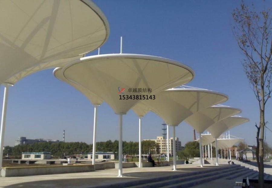 膜結(jié)構(gòu)景觀又叫張拉膜結(jié)構(gòu)景觀,是21世紀更具代表性的建筑形式。打破了純直線建筑風(fēng)格的模式,能承受一定外荷載的空間結(jié)構(gòu)形式。其造型自由、輕巧、柔美,充滿力量感,阻燃、制作簡易、安裝快捷、節(jié)能、易于施工、使用安全等優(yōu)點,同時給建筑設(shè)計師提供了更大的想象和創(chuàng)造空間,因而使它在世界各地受到廣泛應(yīng)用。