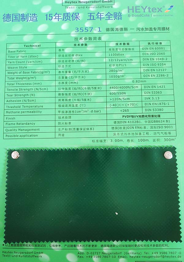 海德斯(heytex)膜材采用高品質(zhì)的低紗高密度聚酯絲(HT PES LOw WICK),粘合層中加入優(yōu)良高效的防毛細、防霉助劑,徹底消除了膜材因側(cè)滲而產(chǎn)生的發(fā)霉,脫落等現(xiàn)象。